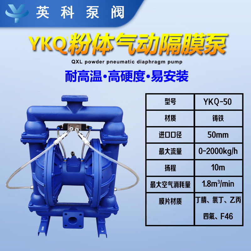 品牌:英科 材质:铸铁 性能:不阻塞 驱动方式:气动 空气消耗量:0-1.5 最大供气压力:7 允许颗粒值:5 mm 吸程:1 m 出口压力:2-7 Mpa 扬程:10 m 流量:0-2 m3/h 工作压力:2-7 型号:YKQ-50