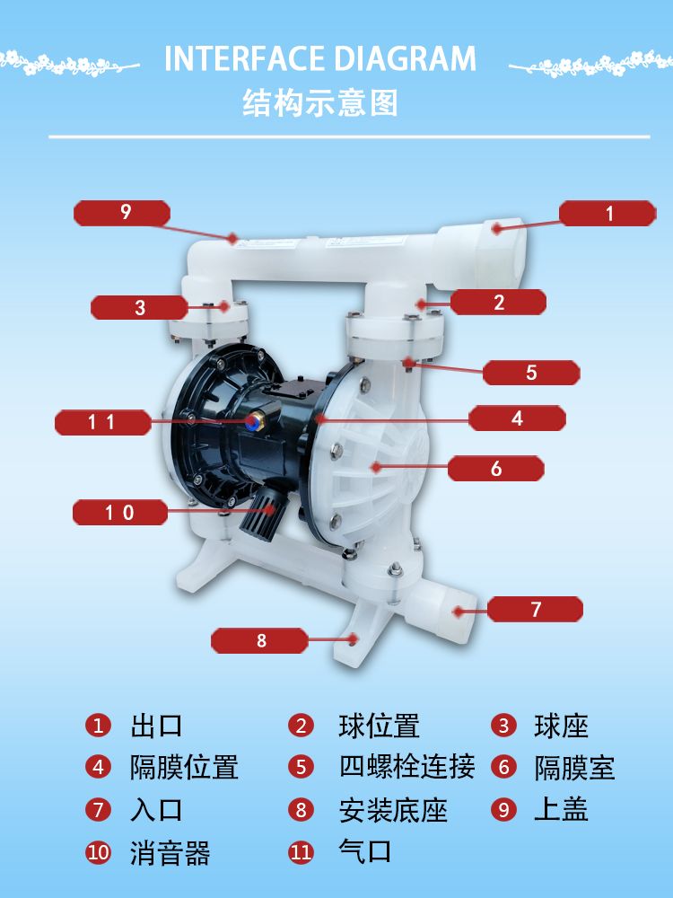 工程塑料气动隔膜泵QBY-25SF常见故障型 号 进出口径(mm) 流量