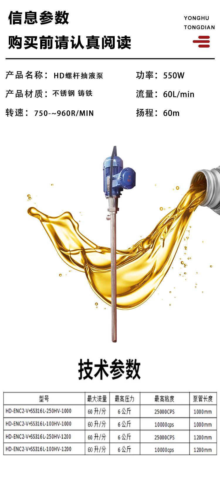 > 英科牌HD-750W螺杆式插桶抽液泵